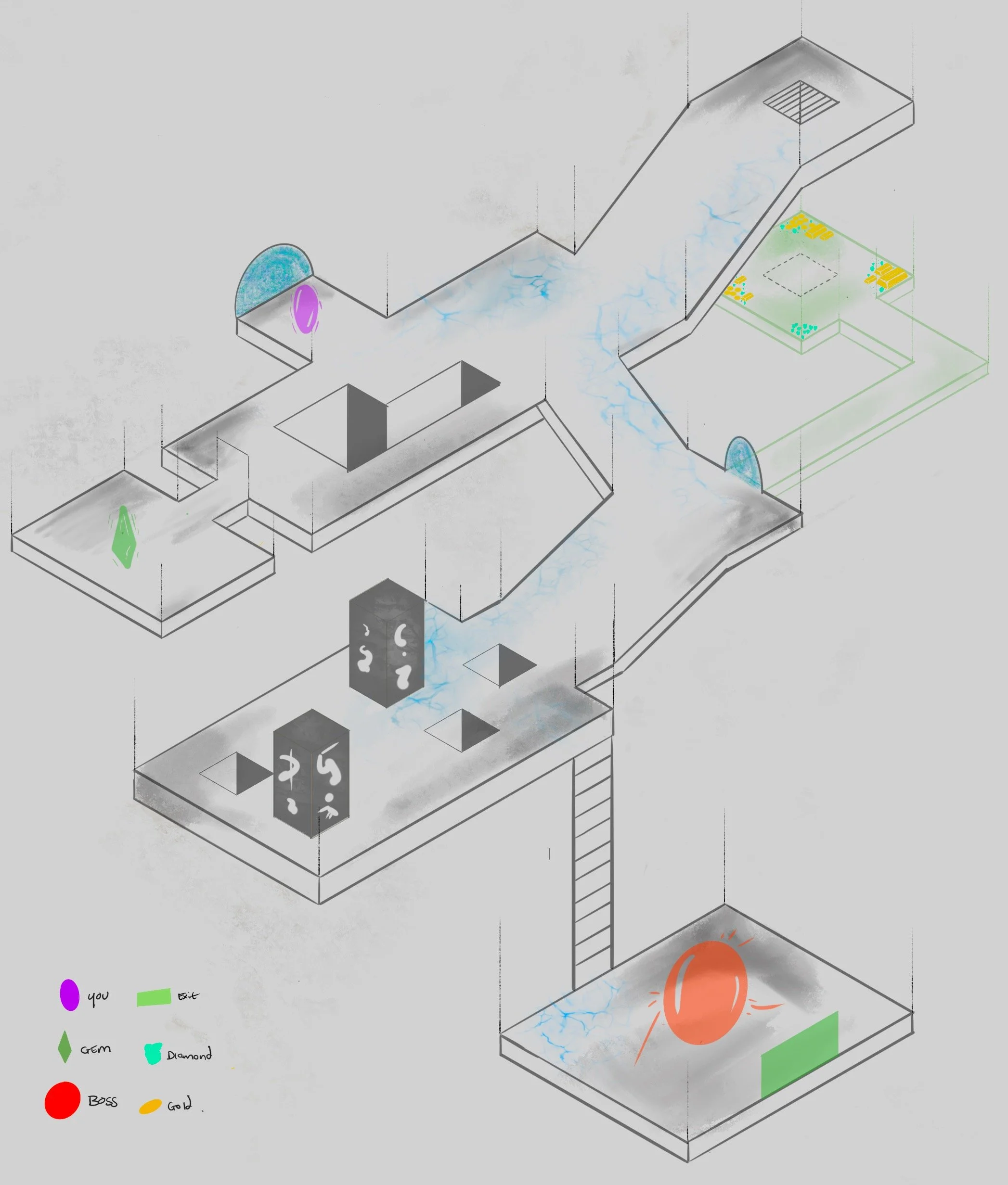This practical assignment consisted of creating a 2D image of a level map for a single-player exploration/adventure game in first person. For the second part of this practical assignment, i was given the task of using the tools I had been learning about to create a grey box version of the level i designed in the previous practical assignment. The level should be playable with at least one puzzle element in it that requires visual scripting. Building on the first and second assignments, i had to finish the level. I placed all final art, lighting, sounds and music. I was tasked to place at least one imported asset with its own texture and an imported sound.