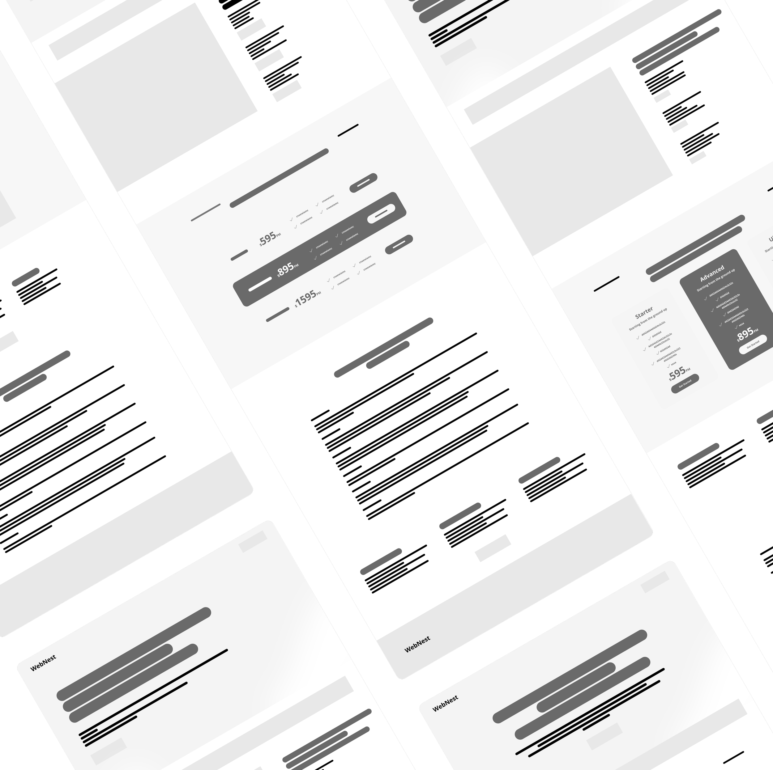 Designing the wireframes for WebNest with a clear, user-friendly layout ensures that information is presented in a calm, readable flow. Breaking down each section within the wireframe provides a clear roadmap for where key elements—such as package options—will be positioned, making the structure intuitive and easy to navigate.