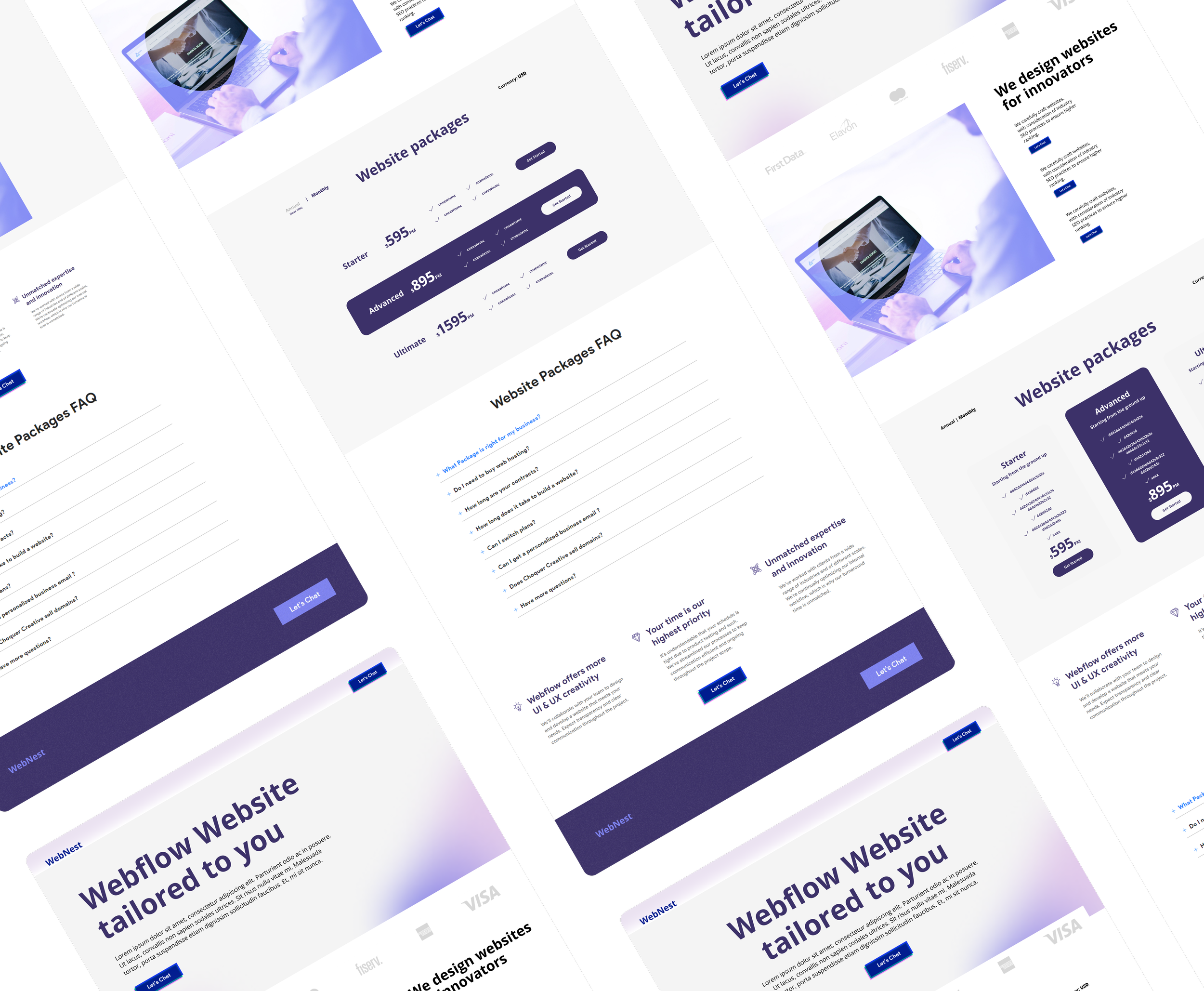 To develop fresh, impactful designs for an agency specializing in custom web packages delivered through Webflow, with a focus on expanding audience reach. The goal is to enhance the visual appeal and functionality of their offerings, attracting a broader client base and elevating the brand's presence in the competitive digital landscape.